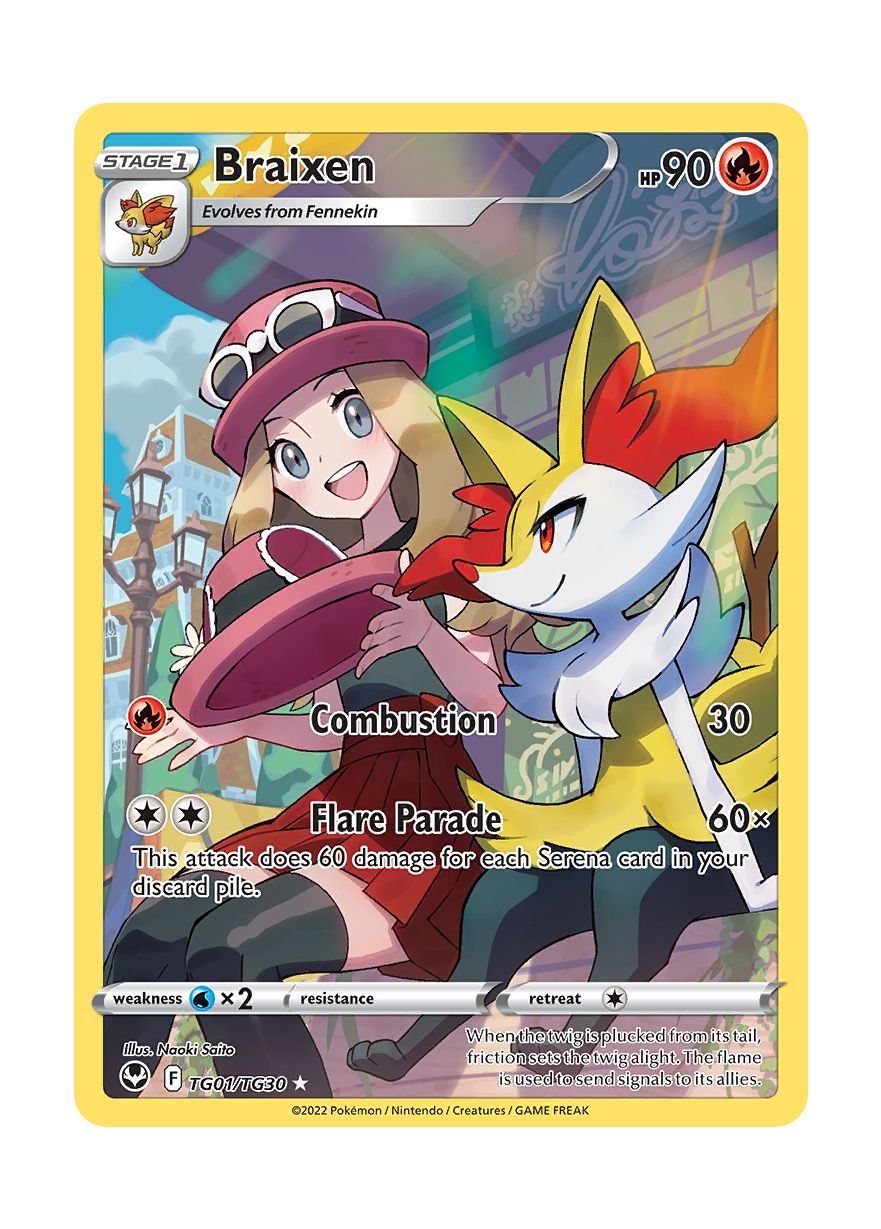 De Braixen Pokémonkaart, een schitterende toevoeging aan elke collectie, valt op met zijn Trainer Gallery Rare Holo rarity die een unieke glans en een hoge verzamelwaarde biedt. Deze kaart wordt gekenmerkt door een prachtige holografische illustratie die Braixen in actie toont, en versterkt door de prestige van de Trainer Gallery serie die bekend staat om zijn zeldzame en visueel indrukwekkende kaarten. Of je nu een fervent speler bent of een enthousiaste verzamelaar, deze kaart is een must-have vanwege zijn aantrekkelijk design en de potentieel strategische waarde in het Pokémon Trading Card Game.