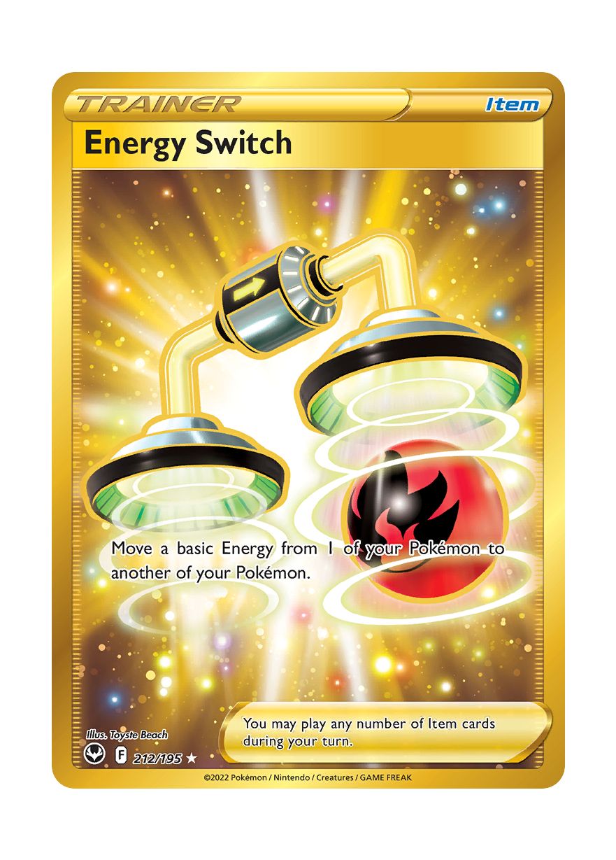 De "Energy Switch" Pokémonkaart, gekategoriseerd als een Rare Secret, is een strategisch item voor de Pokémon TCG liefhebber die voor een tactische wending in het spel wil zorgen, door het toelaten van het verplaatsen van energy van de ene Pokémon naar de andere. Het glimmende ontwerp en de zeldzame status symboliseren de uitzonderlijkheid en potentieel game-changing effect van deze kaart in competitieve battles. Verzamelaars en spelers beschouwen de "Energy Switch" als een waardevol component binnen elke deck door zijn capaciteit om de dynamiek op het speelveld te manipuleren en daarmee een onverwachte voorsprong te creëren.