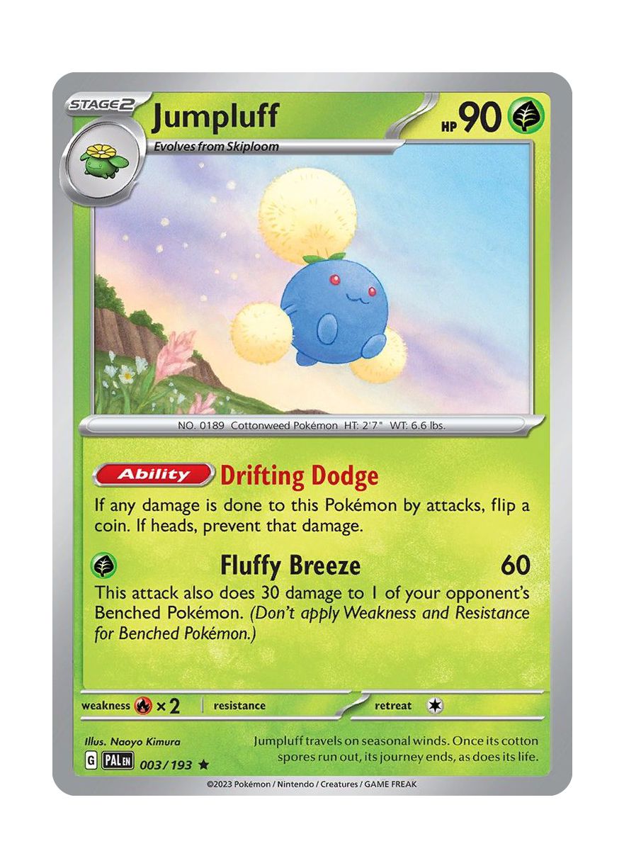 De Jumpluff-kaart, gekenmerkt door zijn zeldzame status, toont de gracieuze uitstraling van deze Windveer Pokémon die levendig in beeld is gebracht met dynamische kleuren en gedetailleerde kunst. Als een waardevolle toevoeging aan elke verzamelaarsset, belichaamt deze kaart de luchtigheid en mobiliteit waar Jumpluff bekend om staat, waardoor het een tactisch speelbare en verzamelbare must-have is. Deze kaart is niet alleen een blikvanger voor fans en spelers, maar vertegenwoordigt ook de strategische diepgang van het Pokémon TCG met zijn zeldzaamheid, die potentie biedt voor versterking van decks en verhoging van de concurrentiekracht in het spel.