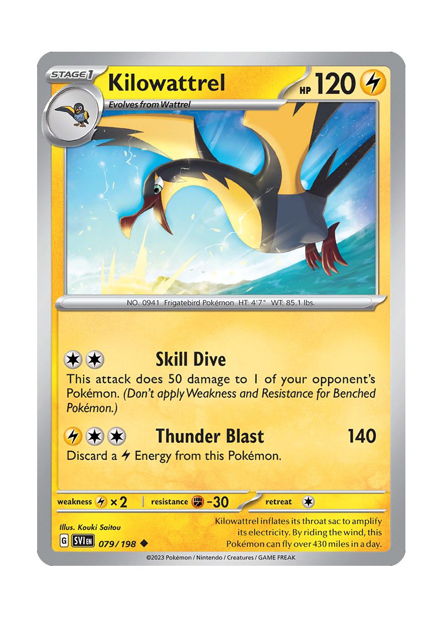 Ontdek de elektriserende krachten van Kilowattrel, een Uncommon Pokémonkaart die onmisbaar is in de decks van strategische spelers die hun tegenstanders met een vonk van creativiteit willen uitdagen. Met zijn indrukwekkende illustratie en de subtiele glans die het unieke karakter van de kaart benadrukt, is Kilowattrel een aanwinst voor verzamelaars en trainers die hun collectie willen verrijken en hun spel naar een hoger voltage willen tillen. Verzamel Kilowattrel om je verzameling te electrificeren en laat je tegenstanders sprakeloos achter in het heetst van de strijd.