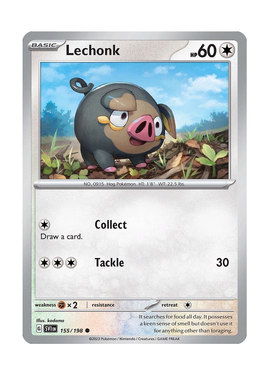Stap in de betoverende wereld van Pokémon met de "Lechonk" kaart, een must-have voor verzamelaars en trainers die common rarity kaarten waarderen. Deze charmante kaart toont de pluizige en lieflijke Lechonk in een levendige en kleurrijke illustratie die de speelse geest van het Pokémon-universum weerspiegelt. Met zijn toegankelijke aard is deze kaart een perfecte aanwinst voor zowel beginners die hun deck willen uitbreiden als ervaren spelers die hun collectie willen verrijken met een vleugje originaliteit en plezier.
