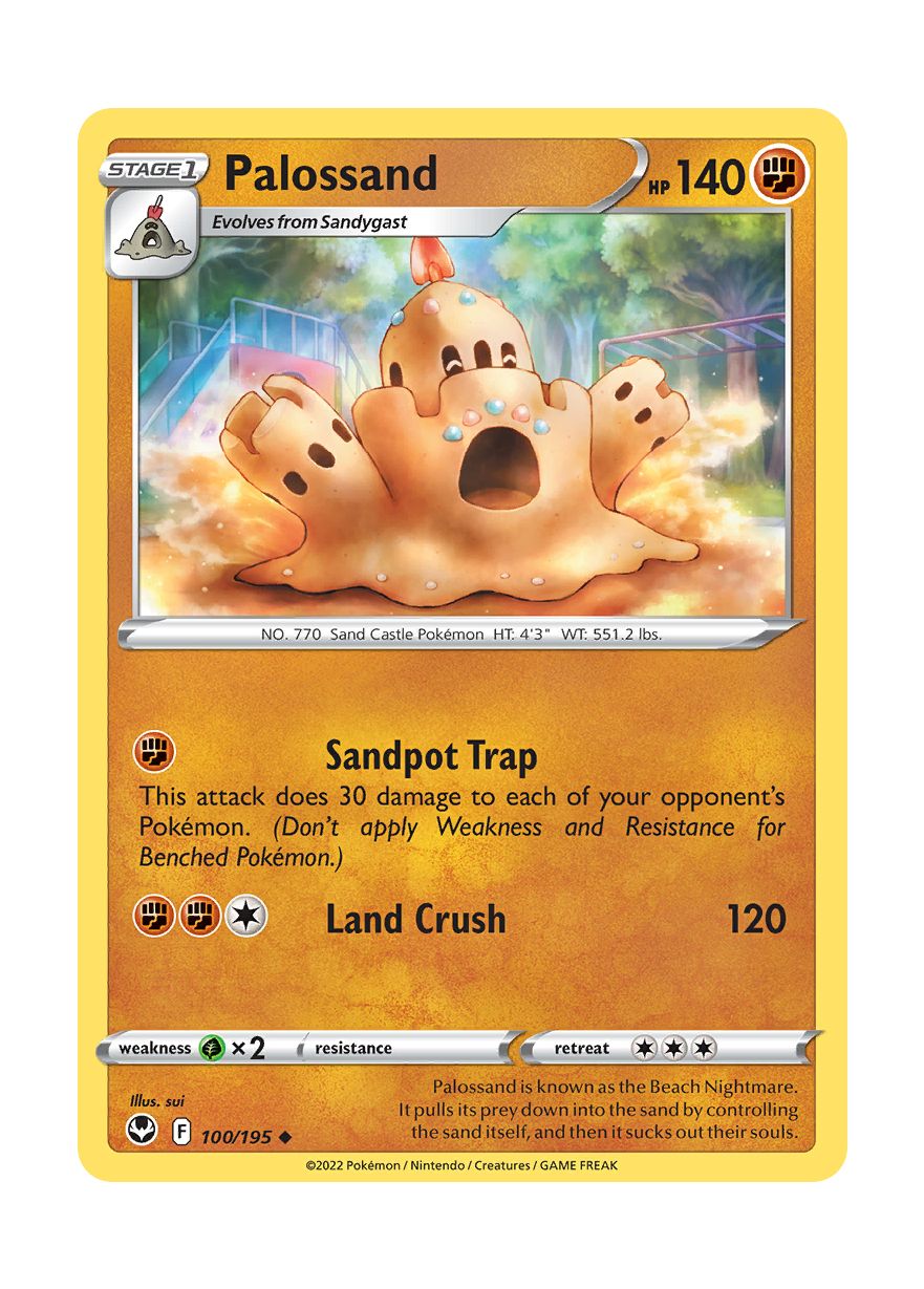 Ontdek de unieke kracht van Palossand in je Pokémon-deck met deze Uncommon kaart die een toevoeging biedt aan elke strategische speler. Palossand, bekend als het zandkasteel Pokémon, brengt een mix van intrigerende mogelijkheden die inspelen op je tegenstanders zwakheden en je eigen verdediging versterken. Versterk je verzameling en gevechtsstrategie met deze zeldzame en veelzijdige Pokémonkaart, een must-have voor elke serieuze verzamelaar en speler.