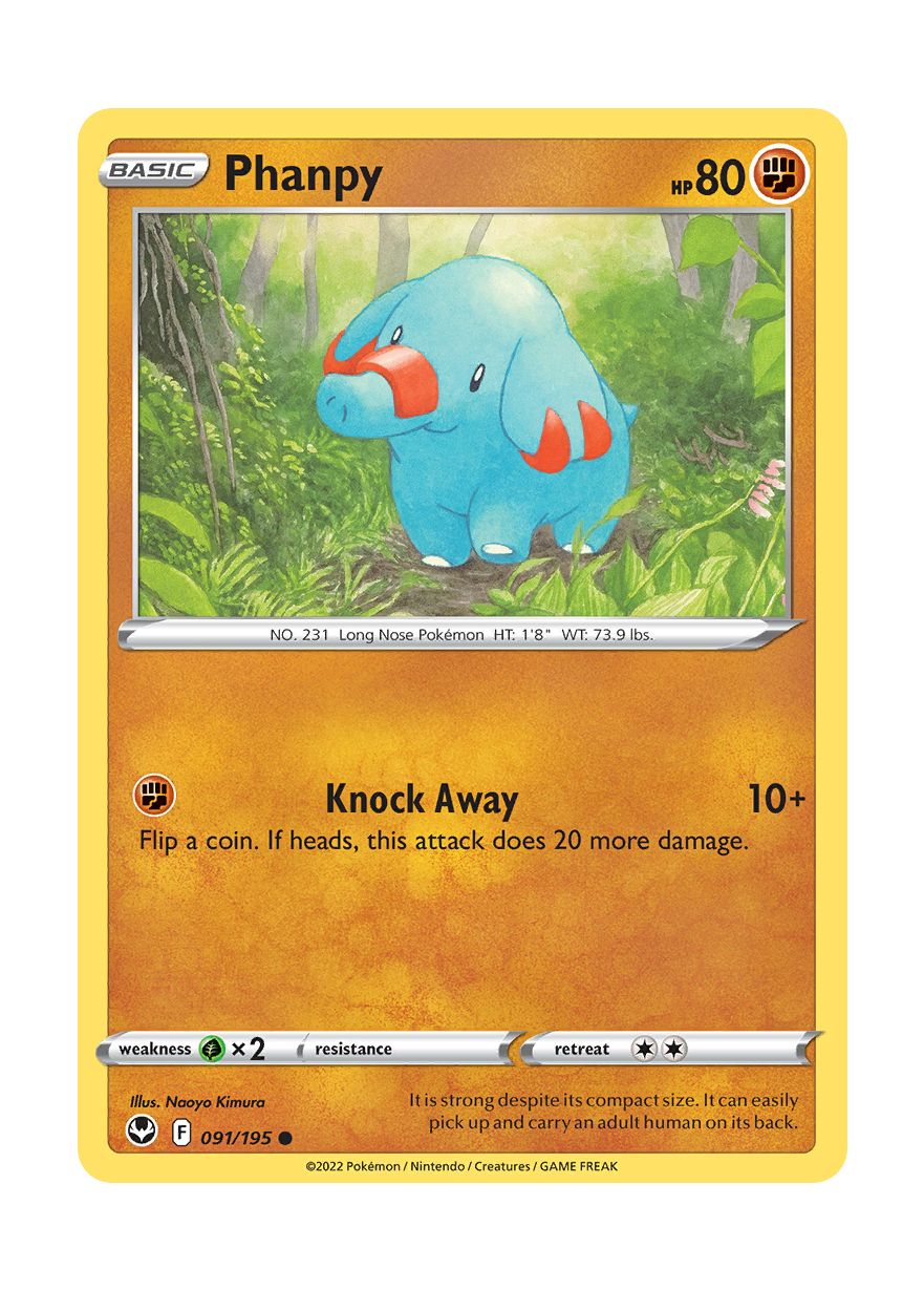 De "Phanpy" Pokémonkaart is een charmante toevoeging aan elke verzamelaar zijn Common-kaarten reeks, waarbij dit kleine, grijze olifant-achtige wezen centraal staat met zijn onweerstaanbare, vrolijke uitdrukking. Dit kaartje toont Phanpy in zijn natuurlijke habitat, omringd door zachte kleuren en natuurlijke elementen die zijn speelse aard benadrukken. Perfect voor spelers die hun deck willen versterken met een betrouwbaar en krachtig karakter, of voor verzamelaars die het nalatenschap van Pokémonkaarten in al hun diversiteit willen vieren.