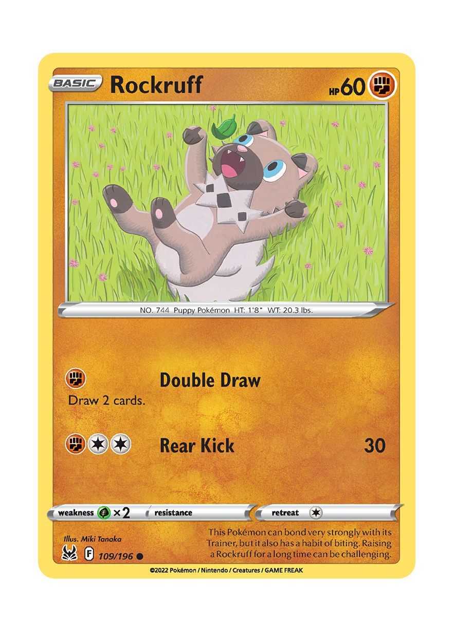 De "Rockruff" Pokémonkaart is een Common rarity kaart die een passend toevoeging is voor de collectie van zowel startende als ervaren Pokémon TCG-spelers. Met zijn charmante illustratie weet deze loyale Rock-type Pokémon het hart van fans snel te veroveren. Perfect voor trainers die een solide fundering willen bouwen in hun deck, Rockruff staat klaar om een betrouwbare bondgenoot te zijn in het opbouwen van hun volgende winnende strategie.