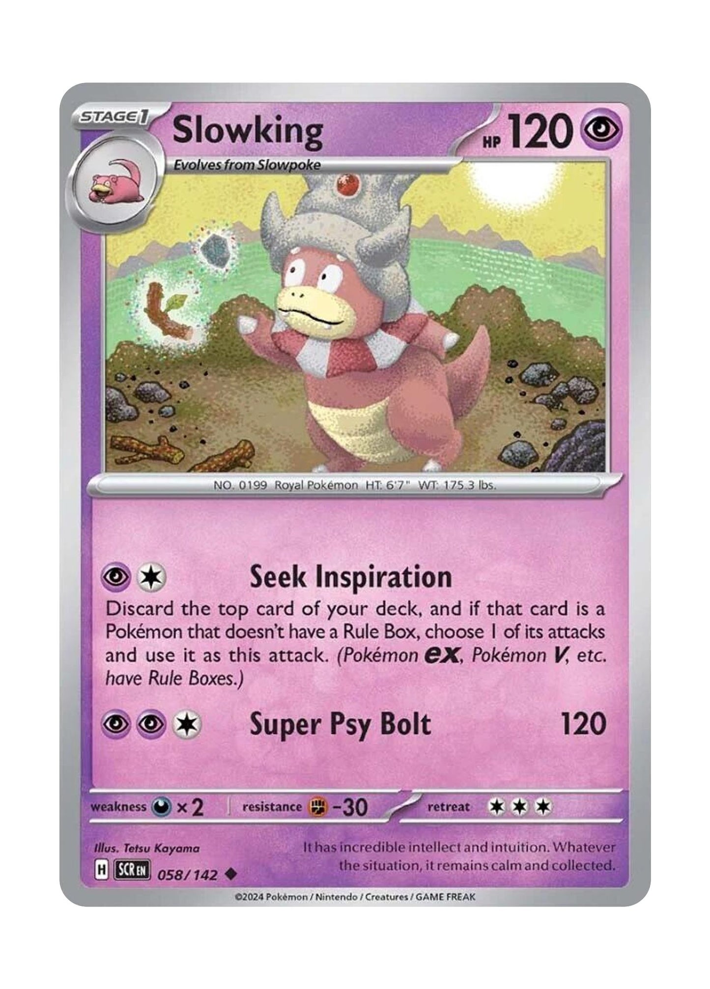 De Pokémonkaart "Slowking" met een zeldzaamheid van Uncommon, toont de majestueuze Water- en Psychic-type Pokémon in al zijn wijsheid en kalmte. Met een verfijnde uitstraling en een kralenkroon op zijn hoofd, straalt Slowking een serene maar krachtige energie uit. Deze kaart voegt een strategisch en esthetisch waardevol stuk toe aan elke verzameling of speelset.